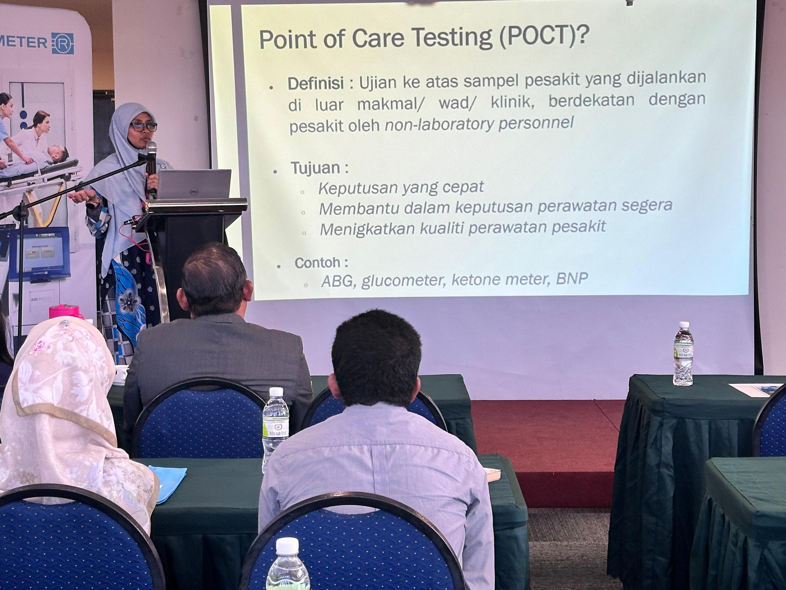 On 6 May 2025, the ABG Day Southern Cluster event was successfully held at Rivertel Hotel, Teluk Intan, bringing together 40 healthcare professionals from Hospital Teluk Intan, Hospital Tapah, and Hospital Slim River. The event was officiated by Dr. Khairul Baharin, Director of Hospital Teluk Intan, and Dr. Abdul Kadir Rifaei, Head of Pathology, who underscored the importance of continuous professional development in arterial blood gas (ABG) analysis and point-of-care testing (POCT) protocols. The program featured comprehensive presentations and practical training sessions conducted by experts from ASSB and Radiometer Malaysia, focusing on ABG result interpretation, equipment troubleshooting, and maintenance. The initiative aimed to enhance clinical competency, promote adherence to POCT guidelines, and improve patient outcomes. All participants successfully completed assessments and submitted feedback to the Ministry of Health, reflecting the event’s commitment to excellence in healthcare education and collaboration.
